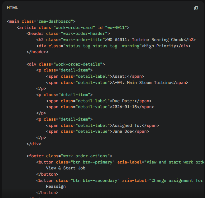 Contoh Prompt : Convert this UI screenshot into semantic, responsive HTML + CSS. Use a mobile-first approach, utilize CSS variables for colors, and ensure WCAG AA contrast. Then explain how to integrate it into a React project.” (Attach screenshot)