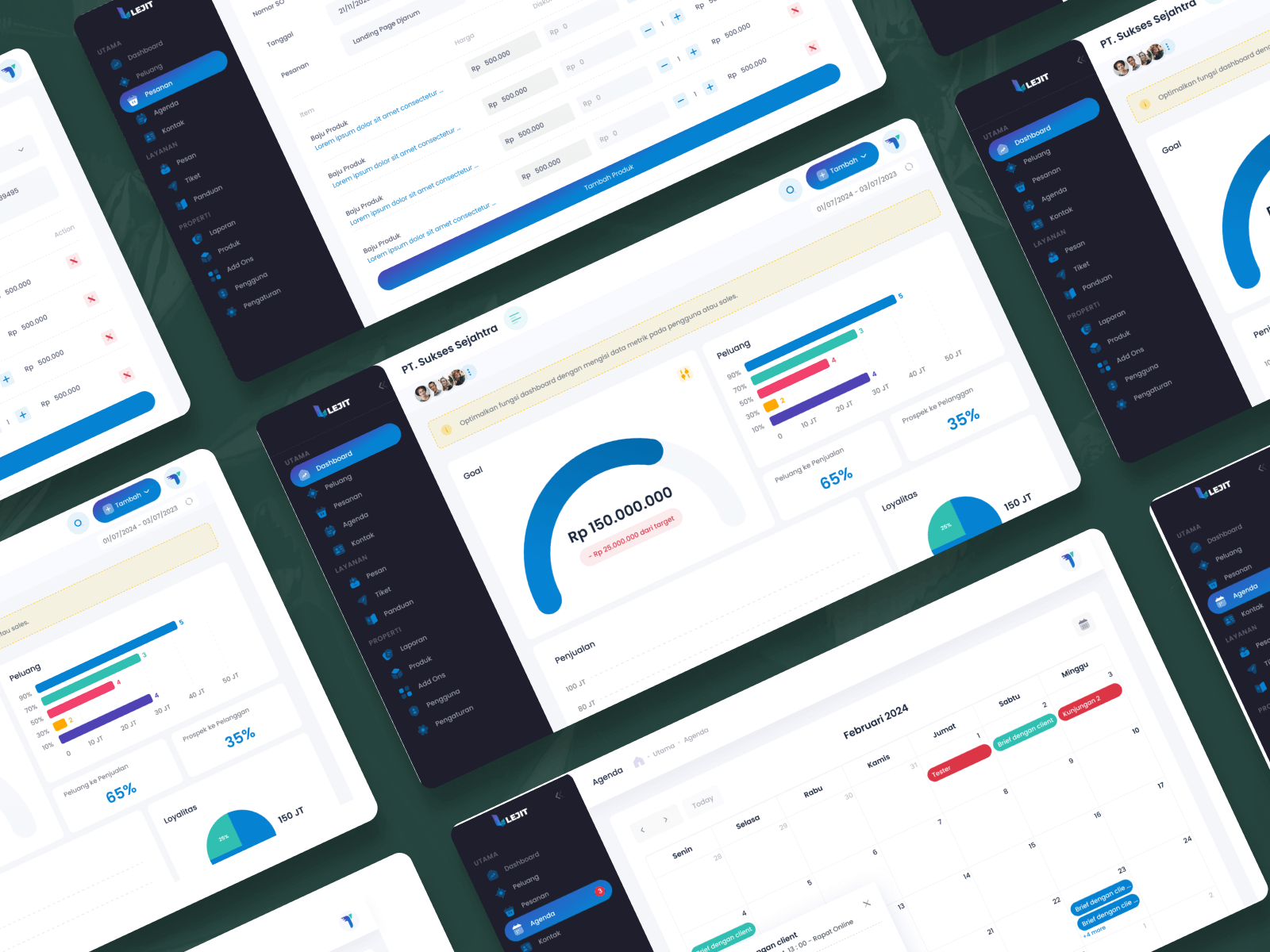 LEJIT is a Customer Relationship Management (CRM) platform designed to help service-based businesses organize and optimize their sales processes more effectively. The system focuses on improving productivity, efficiency, and profitability by streamlining sales activities in a structured and centralized way.